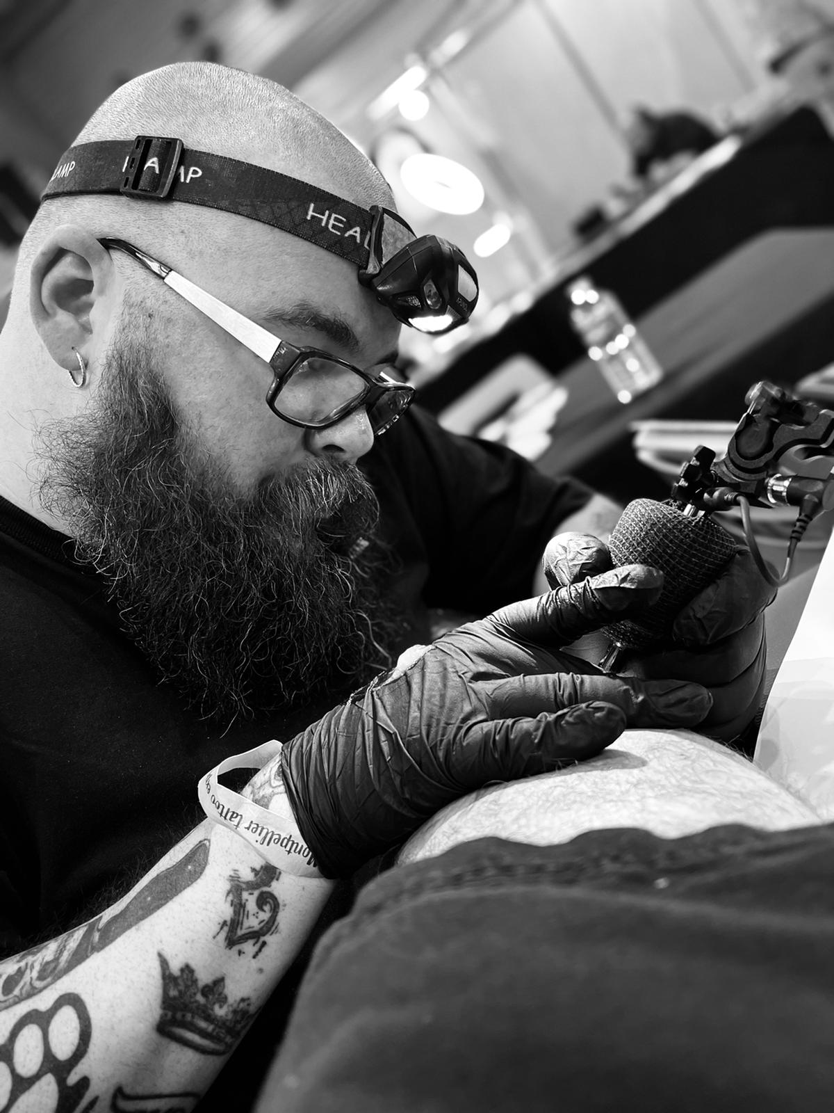 Fat Matt apporte une grande importance à l’éthique du tatouage. Respect et écoute sont ses maîtres-mots.